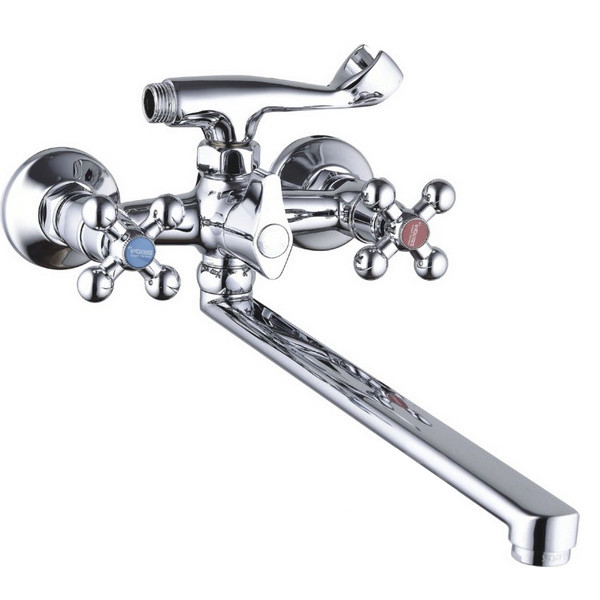 Смеситель для ванны двух вентильный,гусак 35 cм. Высококачественный корпус из экологически чистой латуни обеспечит безопасное и длительное пользование смесителем. Переключатель душ-излив поворотный,трех позиционный,на корпусе. Входящие в комплектацию эксцентрики с внутренними клапанами позволяют увеличить срок службы смесителя,и сохраняют плавную регулировку температуры воды.