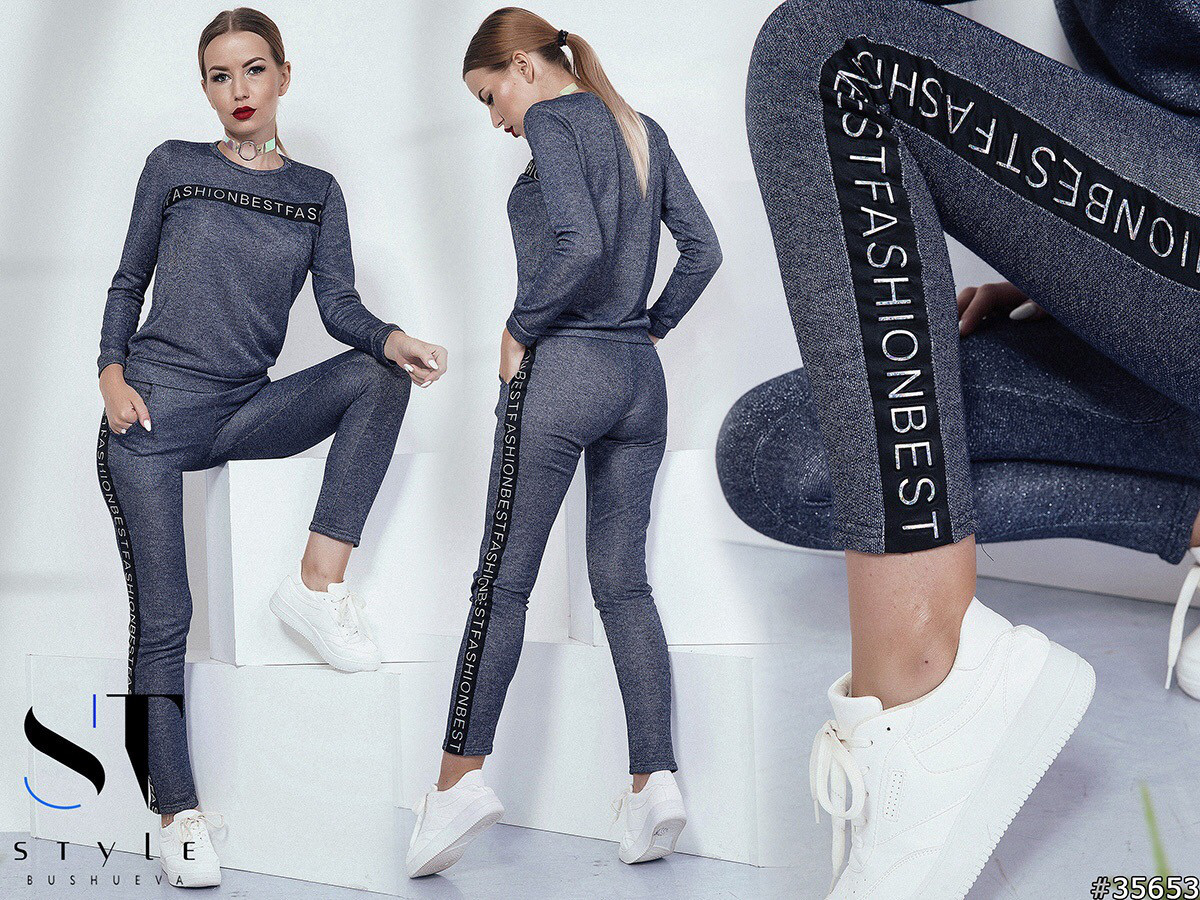 Стильный молодежный сверкающий спортивный костюм с лампасами - фото 1 - id-p8588554