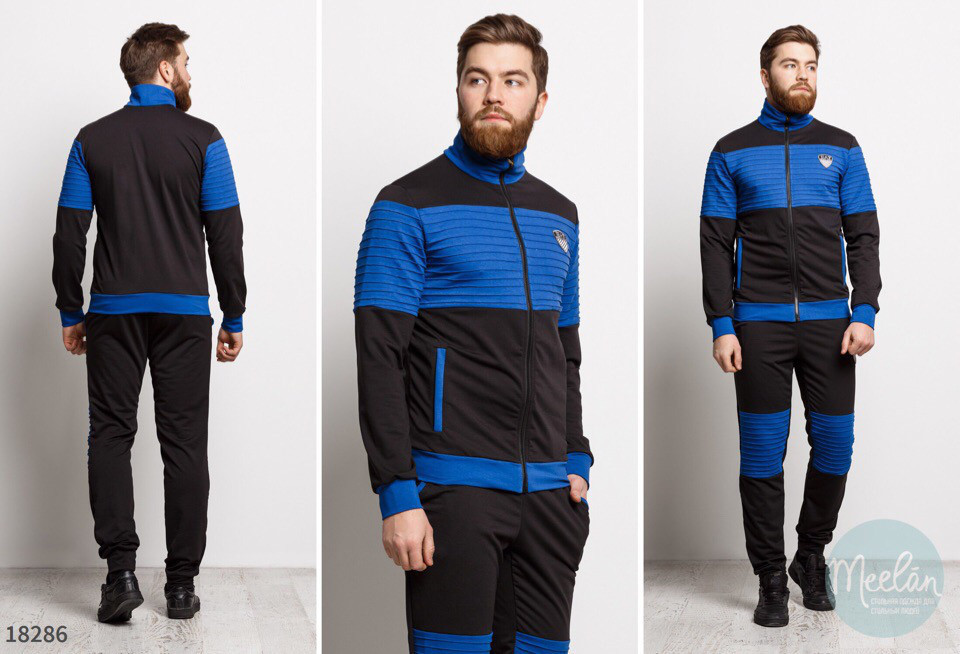 Спортивный модный осенний мужской костюм: кофта на змейке, оригинальные вставки ткани на груди и коленях - фото 1 - id-p8623119
