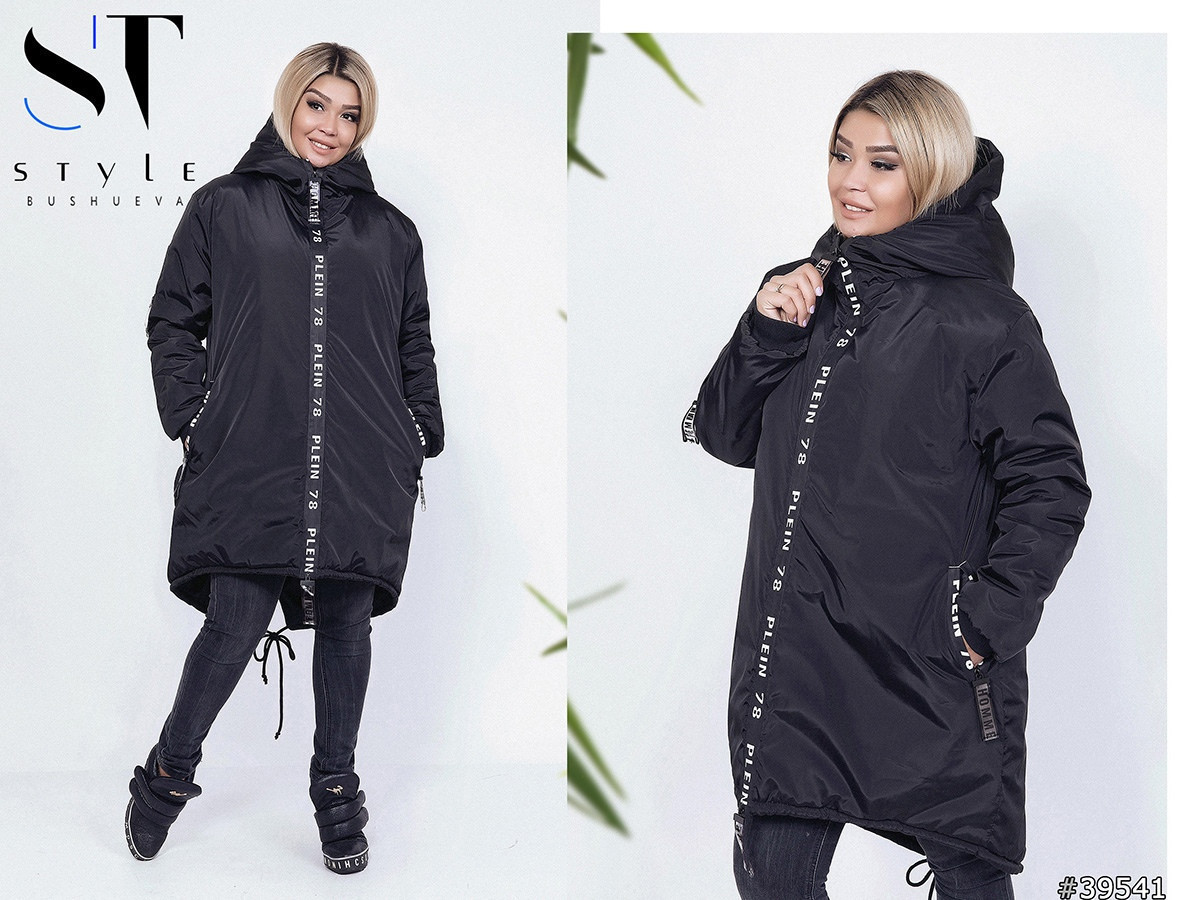 Женская теплая осенне-зимняя широкая куртка с глубоким капюшоном, батал большие размер - фото 1 - id-p8731316