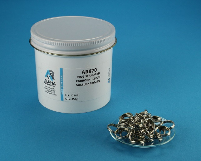 Стандартный образец содержания углерода и серы в стали AR870 Форма образца – колечко весом 1г Содержание углерода 0.027 % Содержание серы 0.0249 % Фасовка: 454 грамм в упаковке.