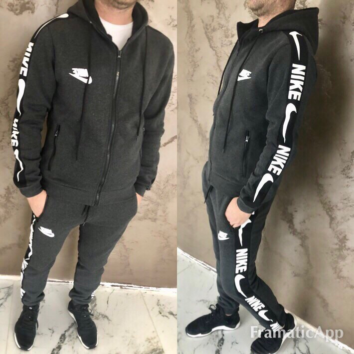 Зимний мужской спортивный костюм: кофта с капюшоном и штаны с манжетами, реплика Nike