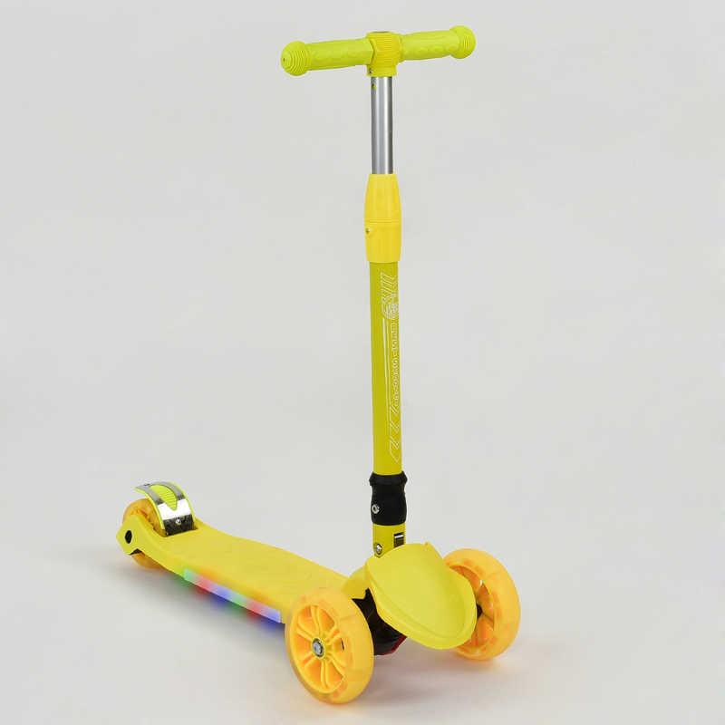 Самокат А 24736/ 881-6 L (8) ЖЁЛТЫЙ, складной руль, d передних колёс14 см, d задних колёс 8см, колёса светятся + ПОДСВЕТКА ПЛАТФОРМЫ - фото 1 - id-p9138653