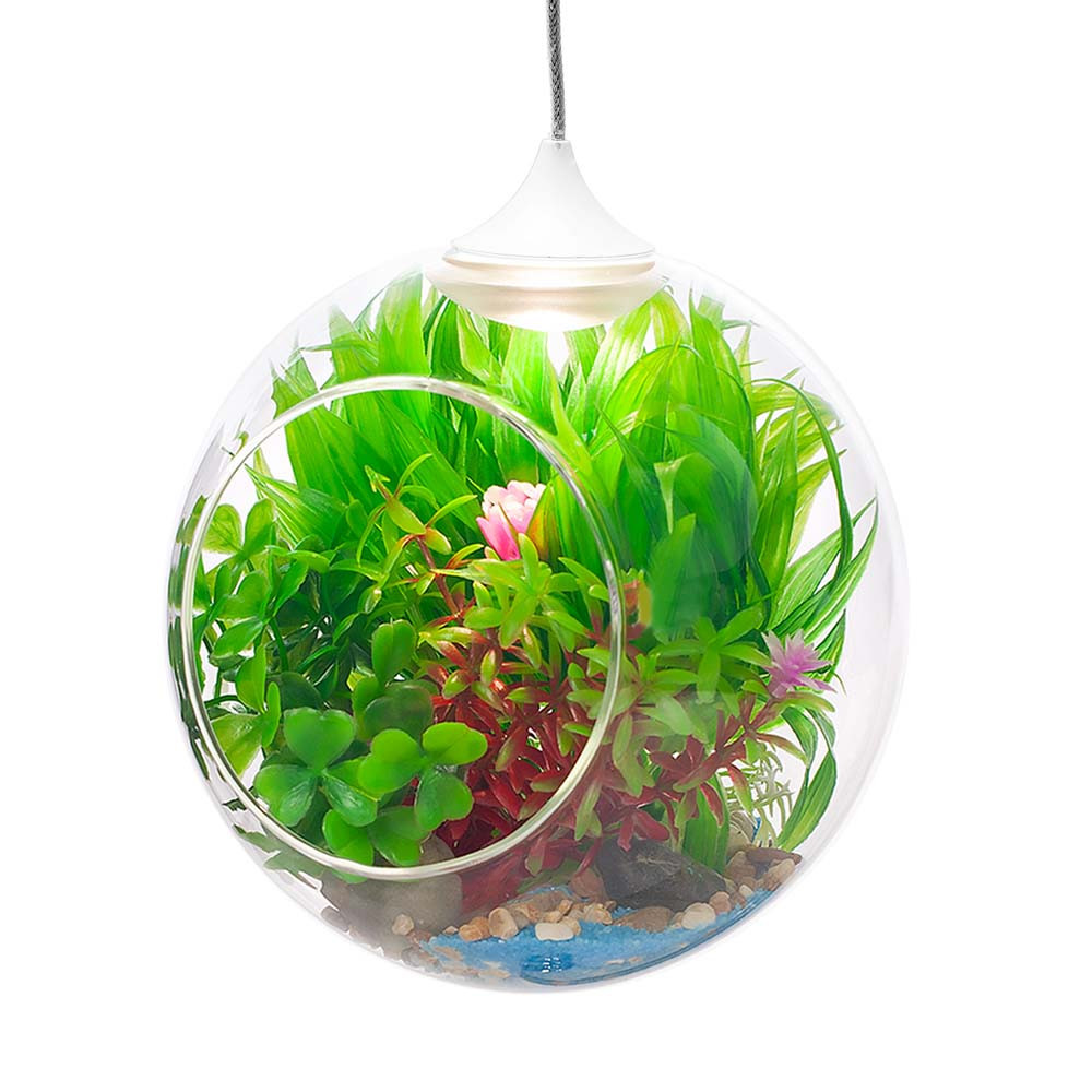 Подвесной фитосветильник Apeyron Fito – оригинальное дизайнерское решение в интерьере, не имеющее аналогов в России и Европе. Такой светильник подарит вам яркие эмоции и творческое настроение. Внутри стеклянного плафона вы можете создать свою уникальную композицию из живых или искусственных растений, а светодиодная лампа красиво и мягко подсветит её. Данная модель фитосветильника представлена в двух цветовых решениях (чёрном и белом) и трёх размерах (120 мм, 150 мм и 200 мм).
