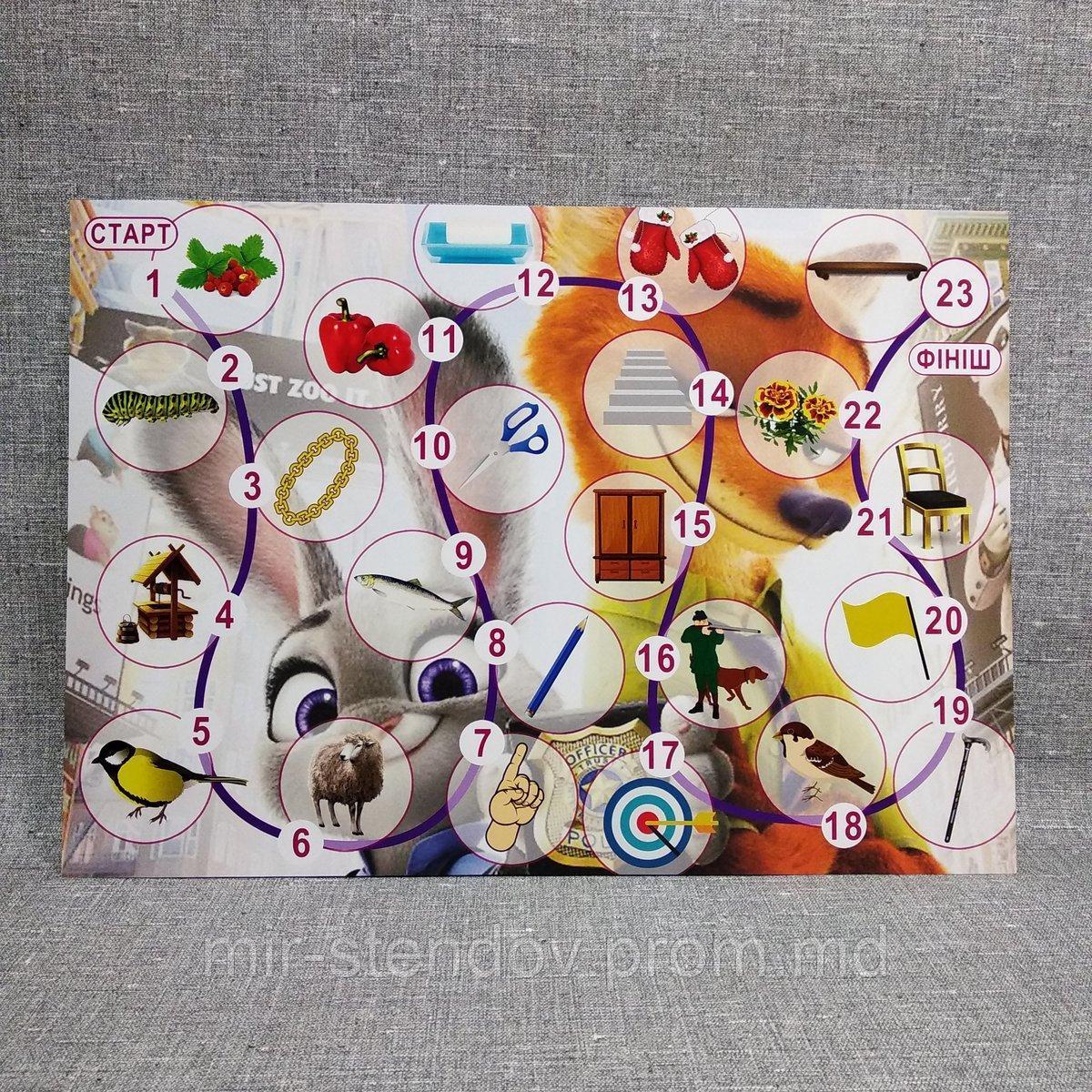 Зображення додатково ламінується, що продовжує термін служби гри до 15 років. Посібник не дряпається і не вигорає на сонці. Можна протирати вологою тканиною або губкою і навіть мити.