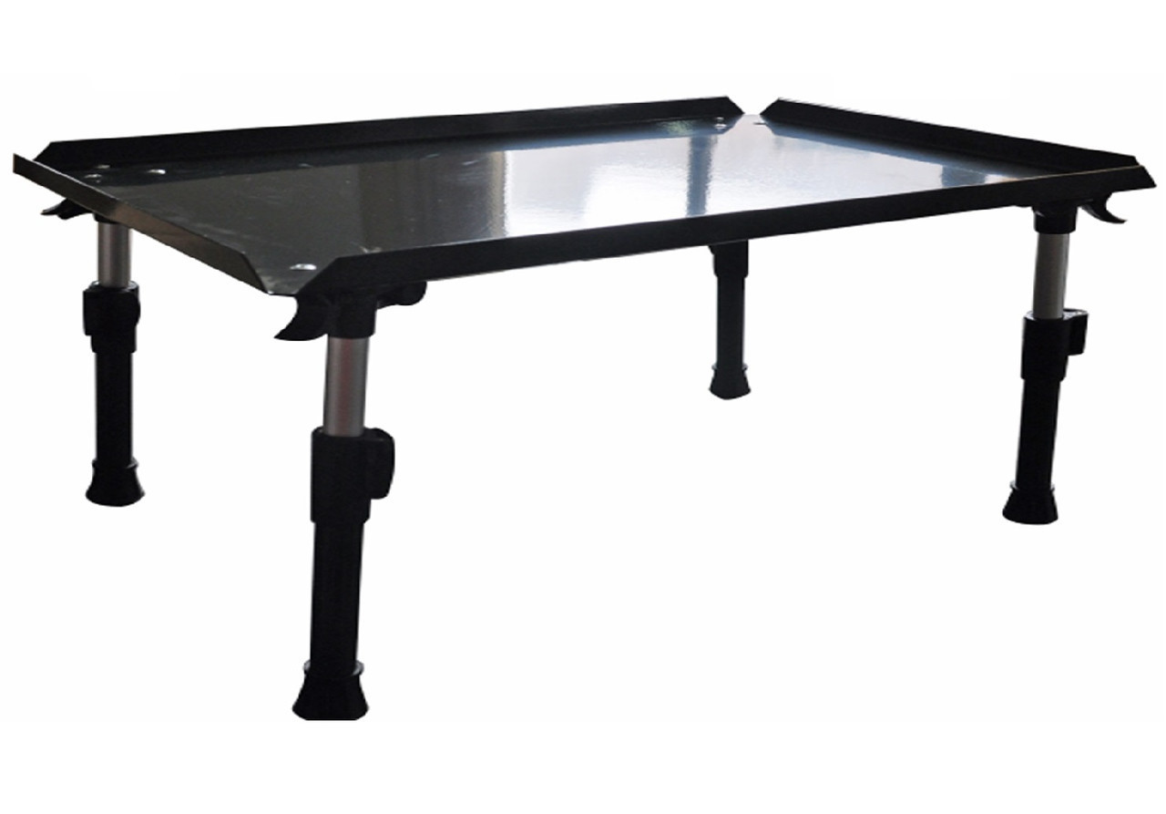 Алюминиевый стол, чрезвычайно прочный и легкой конструкции. Это отличная платформа для хранения инструментов первой необходимости и дает возможность производить все действия, связанные с монтажом всевозможных оснасток. Благодаря бортикам по краям стола, исключается случайное падение инструментов и аксессуаров. Ножки складываются в плоскость, для удобной транспортировки комплектуется чехлом. Телескопические ножки, позволяют установить стол на любой неровной поверхности, каждая из которых идет со своим механизмом крепления. Благодаря резиновым колпачкам на ножках стол не скользит. В комплект входит чехол.