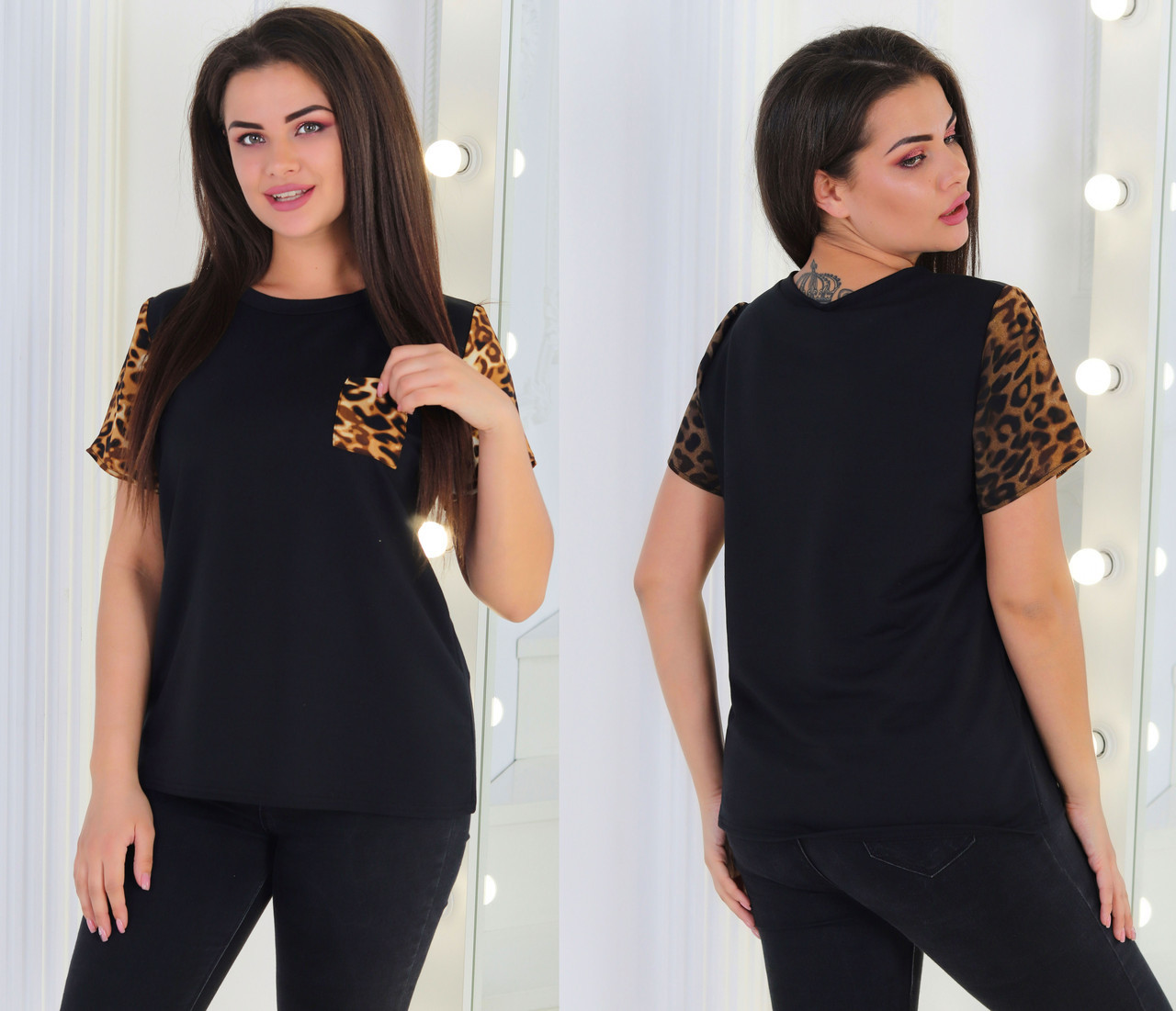 Женская летняя футболка с леопардовыми вставками, батал большие размеры - фото 1 - id-p9684580