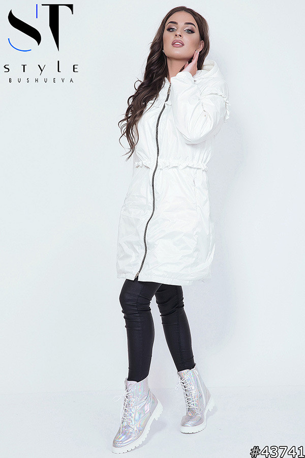Стильная парка – это не просто верхняя одежда, а это модный сегмент, в котором заложены красота и практичность, удобство и стильность. А еще это элемент базового весеннего лука, который без парки не считается завершенным. Модель выполнена в прямом крое с капюшоном на кулиске и с утяжкой по талии. Молния застежка, удобные боковые карманы. Парка декорирована игривыми рюшами, что привносит в образ легкие интригующие нотки. Длина изделия 91 см, рукав 63 см.